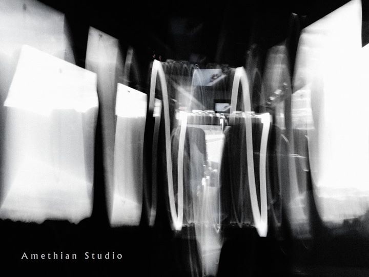 他走在一個奇異的空間,四週是閃爍交錯的螢光粉紅和螢光黃,外加一點又一點白光若隱若現,卻不甚刺眼。沒有牆壁,沒有陸地,杳無邊際,卻能如常走動。